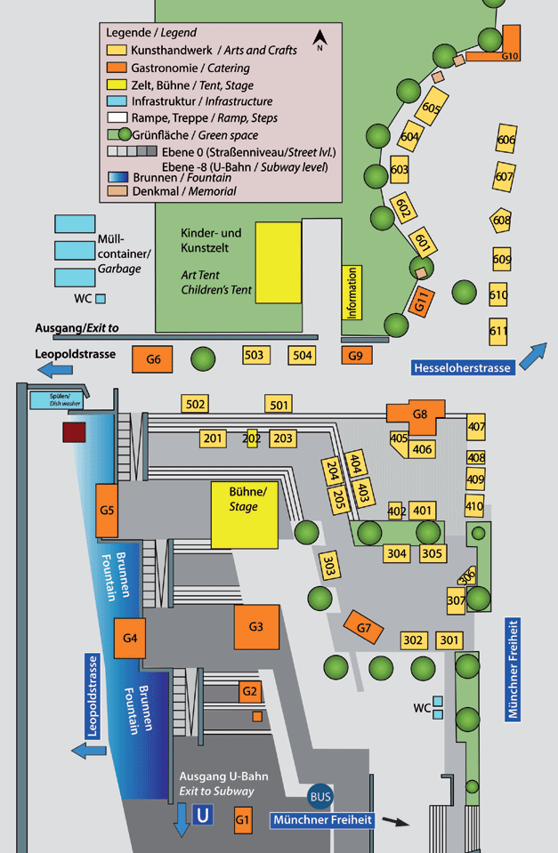 Usually two or three artists share one stall. You can learn more about the artists or food stalls by clicking on a stall symbol.