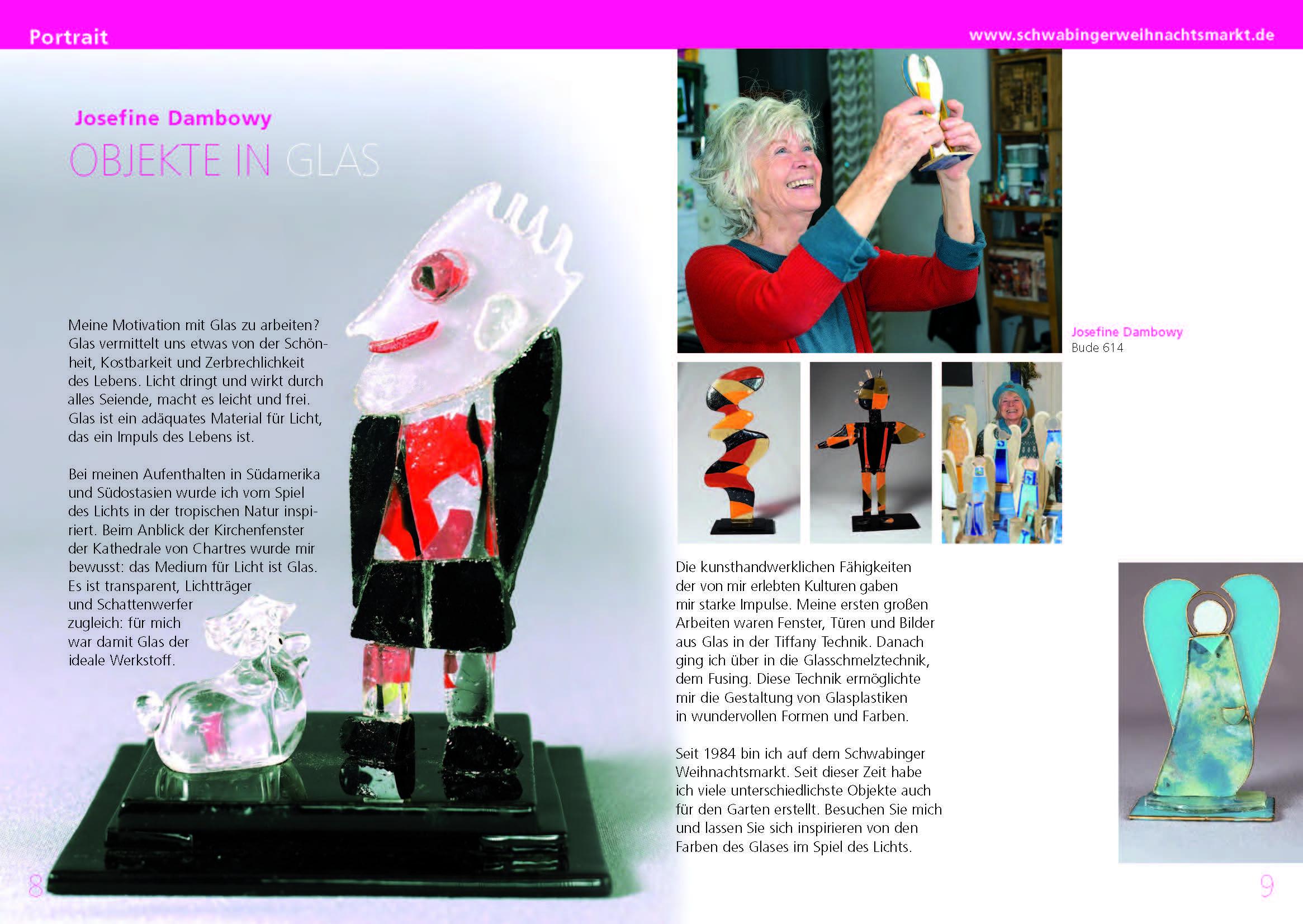 In Gedenken an unsere langjährige Künstler-Kollegin Josefine Dambowy die im September 2025 gestorben ist, finden Sie hier hier noch mal eine kleiner Erinneung an ihr Schaffen bei uns auf dem Weihnachtsmarkt: (Auzug aus unsere Marktzeitschrift von 2019, Fotos von Thomas Giessner)